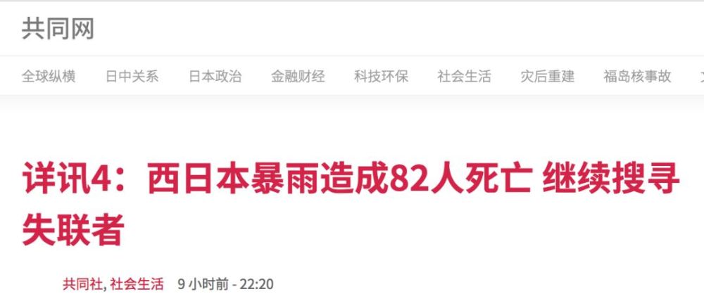 受台风和梅雨季节影响,西日本部分地区近日遭遇史无前例的大暴雨。日本总务省消防厅表示,据日本共同社8日晚报道,灾害已造成至少82人死亡,另有50余人下落不明,伤亡人数还可能不断上升。