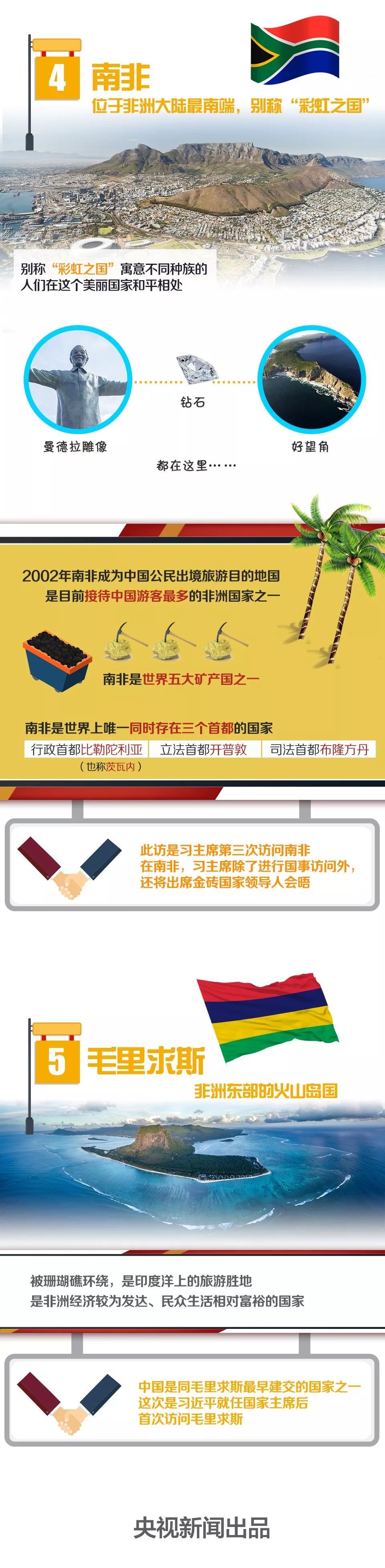 季夏之月,赴万里之约。7月19日至28日,习近平主席将对阿联酋、塞内加尔、卢旺达和南非进行国事访问,出席在南非约翰内斯堡举行的金砖国家领导人第十次会晤,过境毛里求斯并进行友好访问。