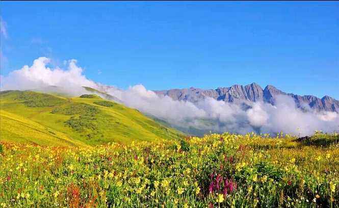 一大片茂密的高山草甸上,鲜花绽放绿草如茵,让人忍不住想要亲近,想要将这样的美景珍藏。